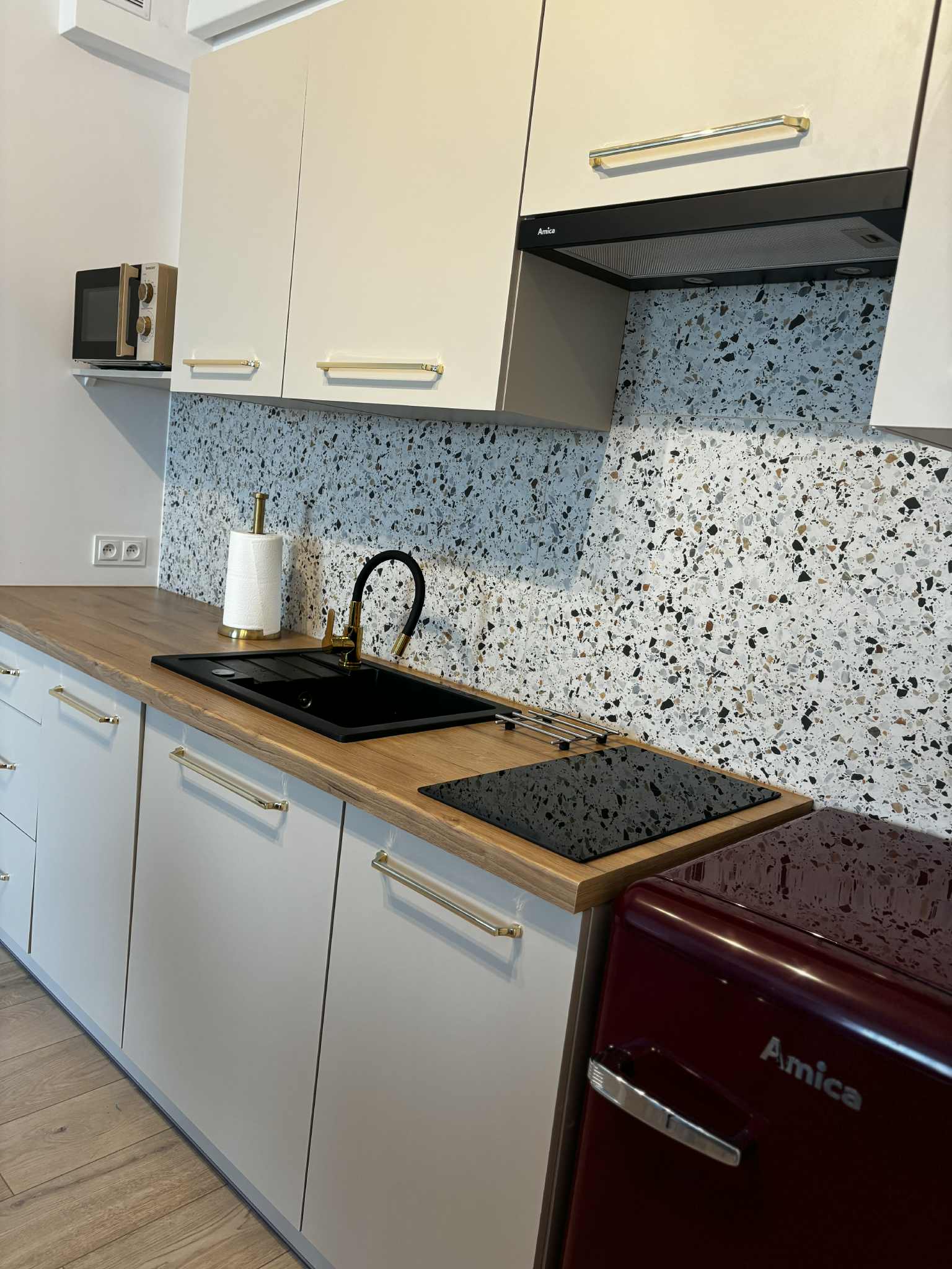 Apartament Słoneczny to komfortowa przestrzeń dla 2–4 osób, idealna na wypoczynek z dala od zgiełku. Składa się z przytulnej sypialni, salonu z rozkładaną sofą i Smart TV, nowoczesnego aneksu kuchennego oraz wyjścia na prywatny taras z widokiem na zieleń. Jasne wnętrza i funkcjonalny układ sprzyjają relaksowi o każdej porze dnia.