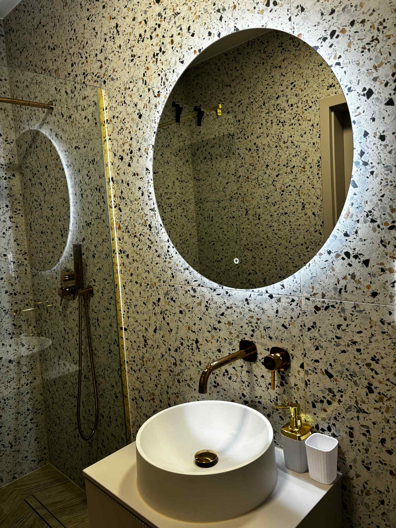 W apartamencie znajduje się elegancka łazienka z prysznicem typu walk-in i podświetlanym lustrem. Do dyspozycji gości jest szybkie Wi-Fi, klimatyzacja, ogrzewanie oraz bezpłatny parking. To idealna propozycja na spokojny pobyt w nowoczesnym standardzie, blisko natury.